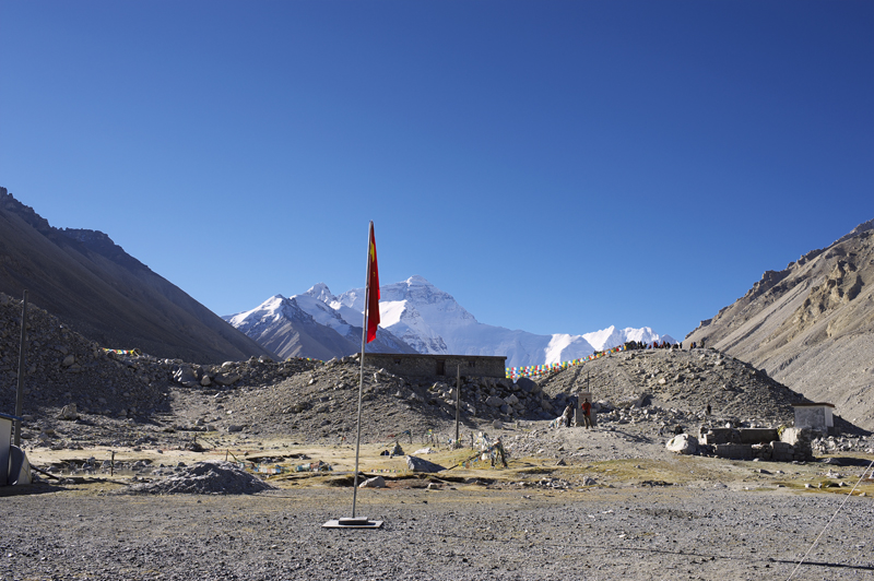 开始进珠峰大本营了,我们在这爆了一个胎。