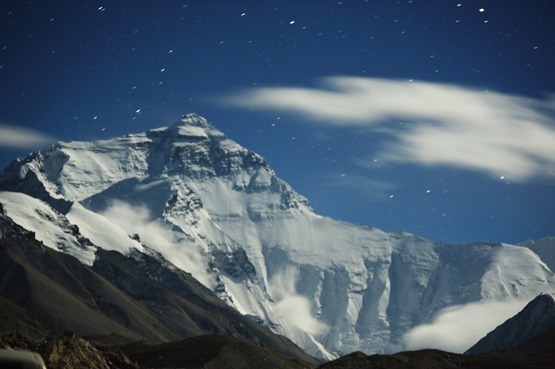 没赶上珠峰的日落,于是拍了个有星星的珠峰。