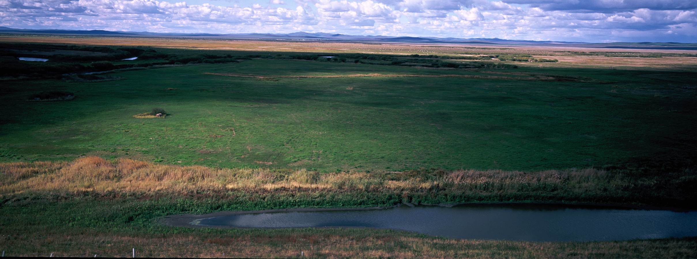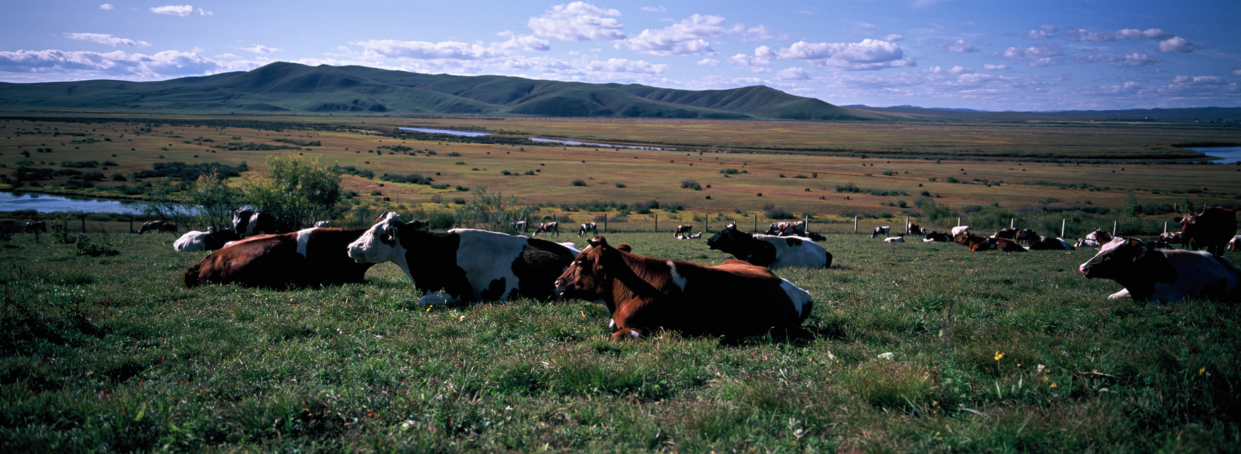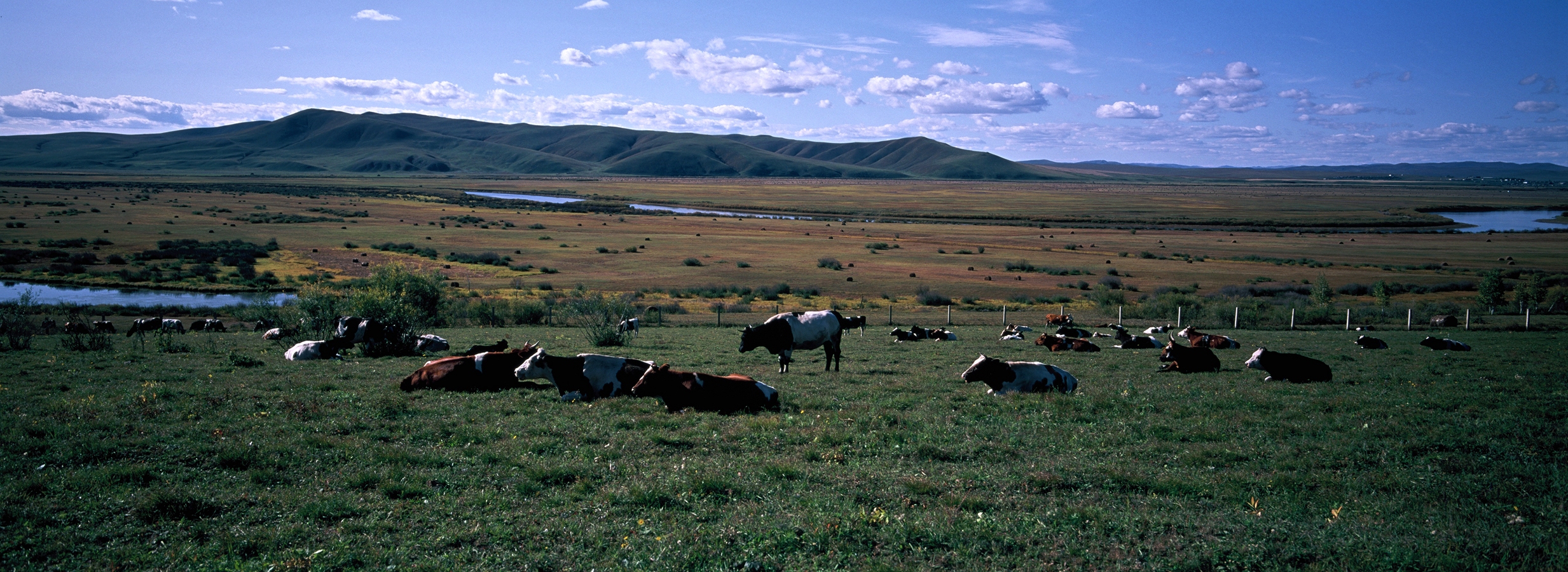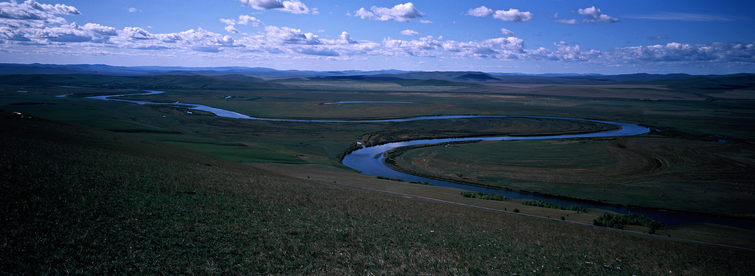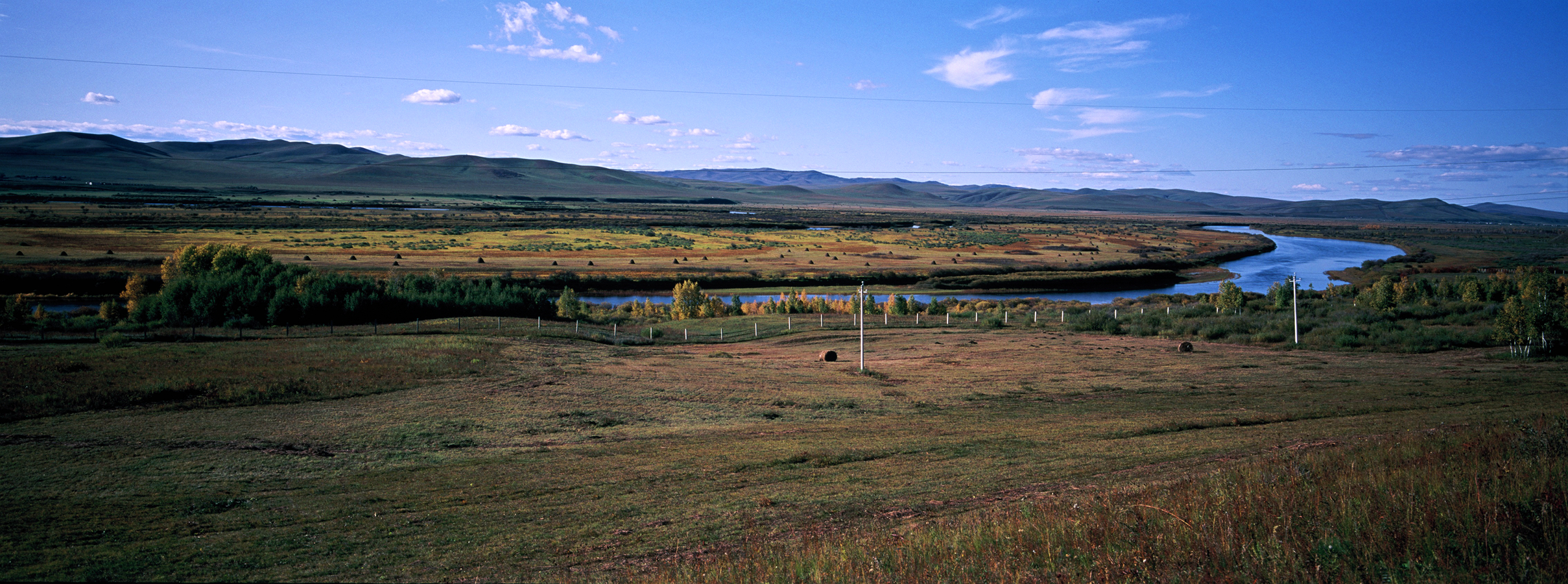 下午前往莫日格勒草原,莫日格勒河发源于大兴安岭西麓,流经呼伦贝尔大草原,全长290多公里,属额尔古纳河水系。其水势平缓宛若大草原的玉带和蛟龙,被老舍先生赞叹为当之无愧的“天下第一曲水”。在这里我们最后享受一下草原的辽阔后,就可以启程返回海拉尔。莫尔格勒河是一条河道十分狭窄,但极其弯曲的河流。从空中俯瞰就像是一条蔚蓝色绸带,因为它过于弯曲甚至得名【九曲十八弯】。河水由涌泉汇聚形成,所经过的区域多是杳无人烟的山地、草原,所以河水很洁净,是完全没有经过污染的水源。