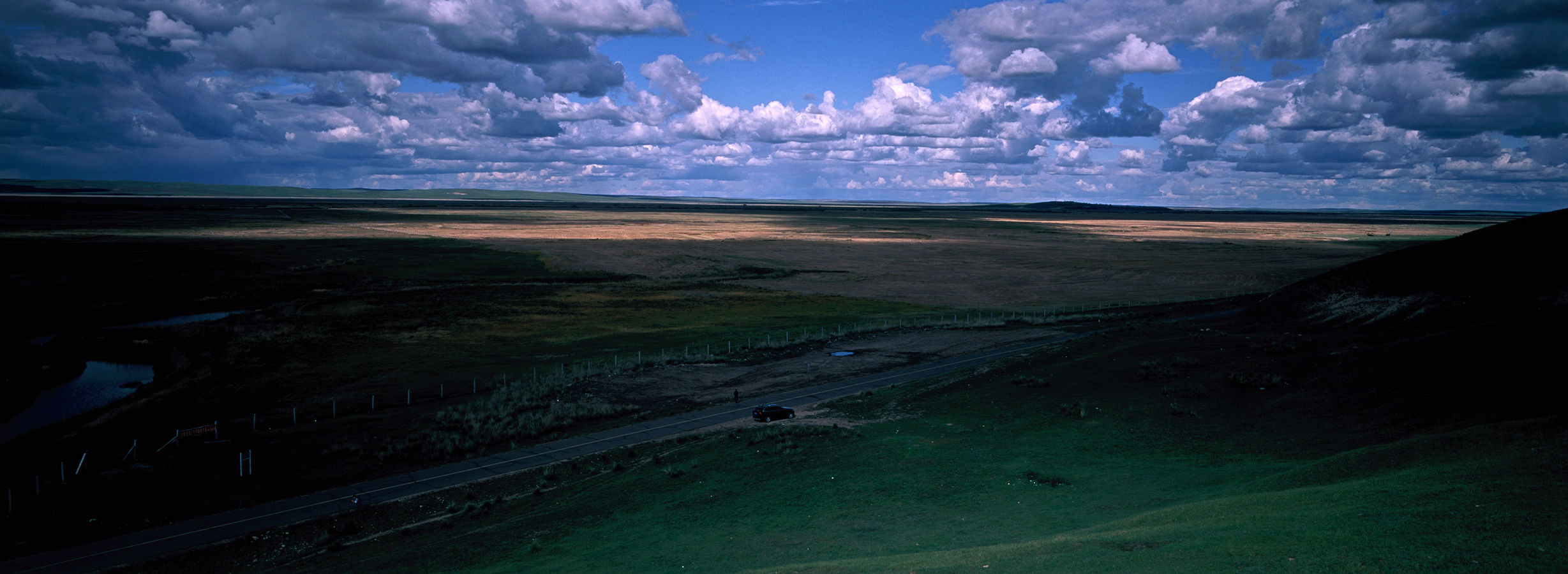 从满洲里去往黑山头的路上,在904县道186公里处(这里有石碑标识公里数,比较容易找到)你会看到一片令人惊艳的湿地, 人称186彩带河,它完全可以媲美根河湿地。