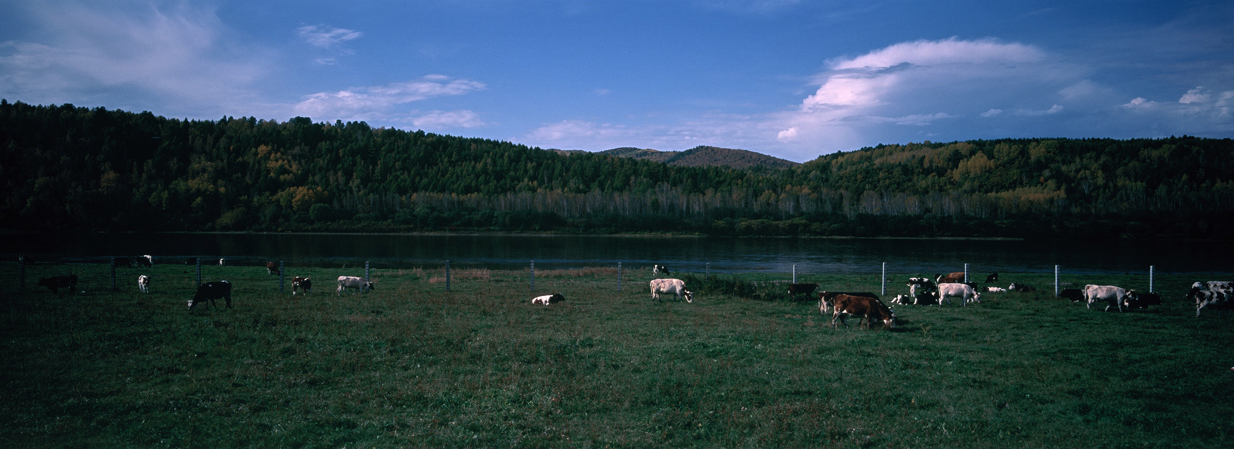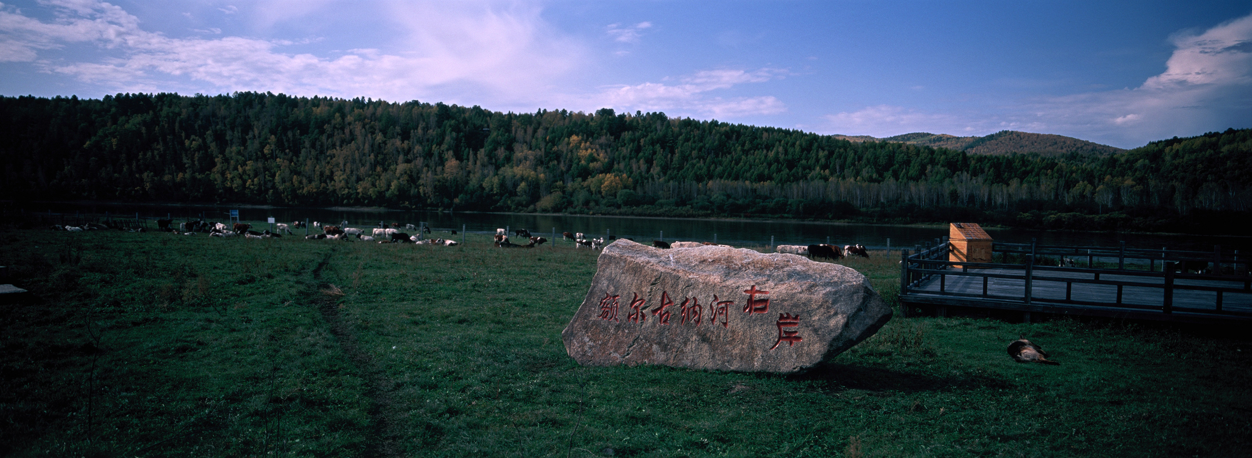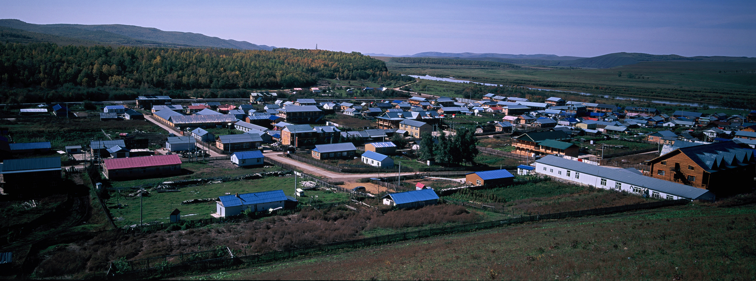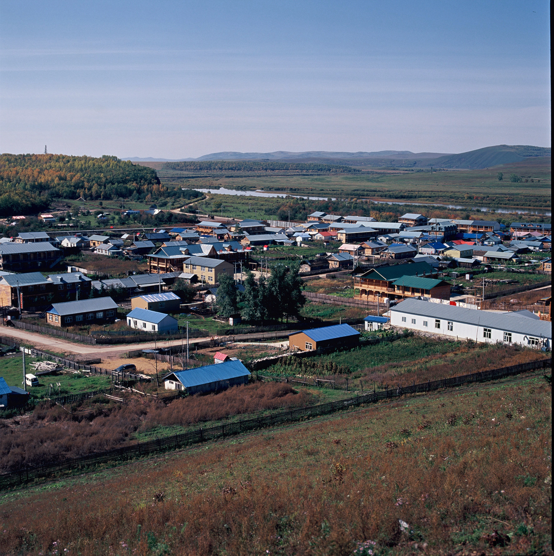 室韦是草场和林场的混合地带,既有辽阔的草原,又有小丘上散落的林地。地道的木板房、圈牛羊的木栅栏、还有“柳巴面包房”“丽达家”“玛尼亚家”…… 很多名称都沿用了俄文译名,小的俄式面包叫“沙克”,面包干叫“苏克立”等等。大列巴个头很大,和半个篮球差不多大小。最妙的是这里是距离俄罗斯最近的地方,你可以直接看到对岸的俄罗斯村庄。